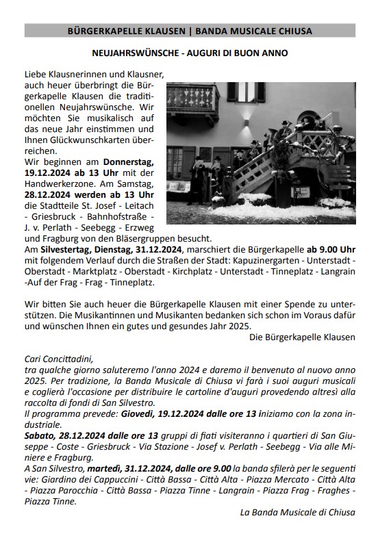 Ankündigung Silvestersammlung im Klausner Bote vom 7.12.2024